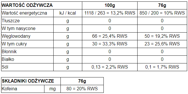 > BCAA (gdy czujesz się przemęczony): z 1 g BCAA w stosunku 8:1:1: Czarna porzeczka i Pomarańcza.