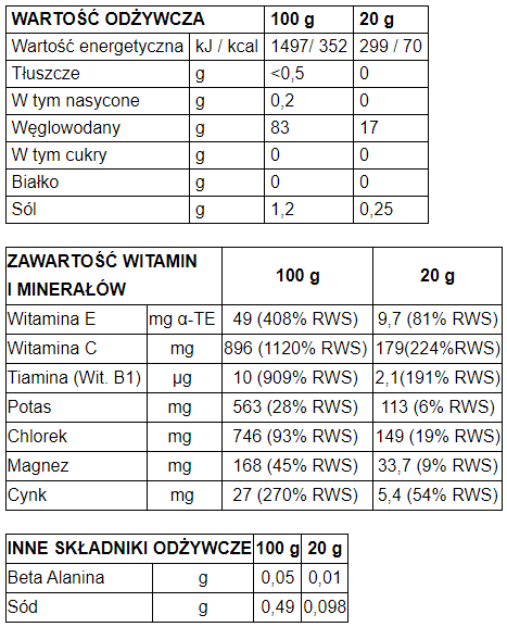 - zawierają beta – alaninę jako inhibitor kwasu mlekowego opóźniający uczucie zmęczenia